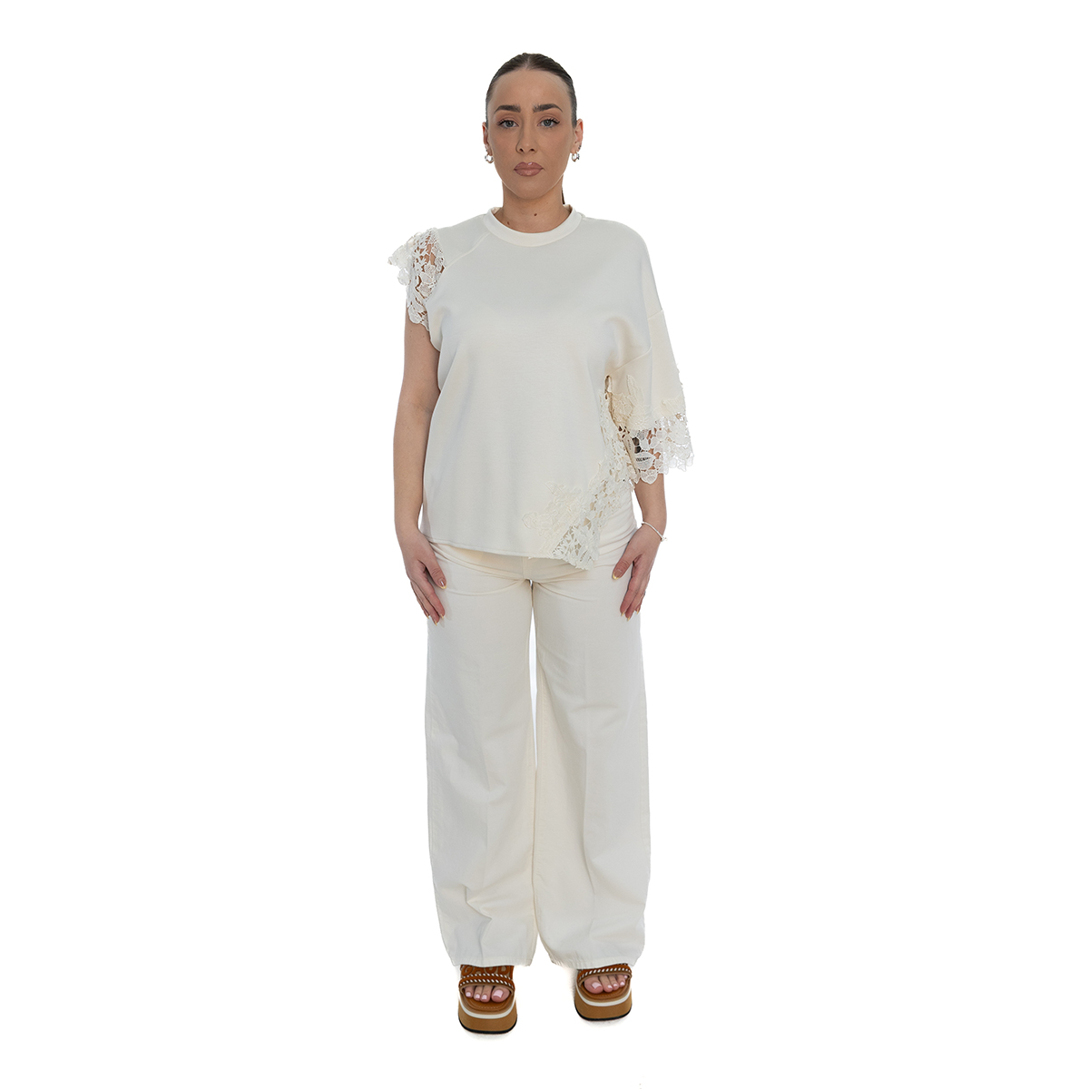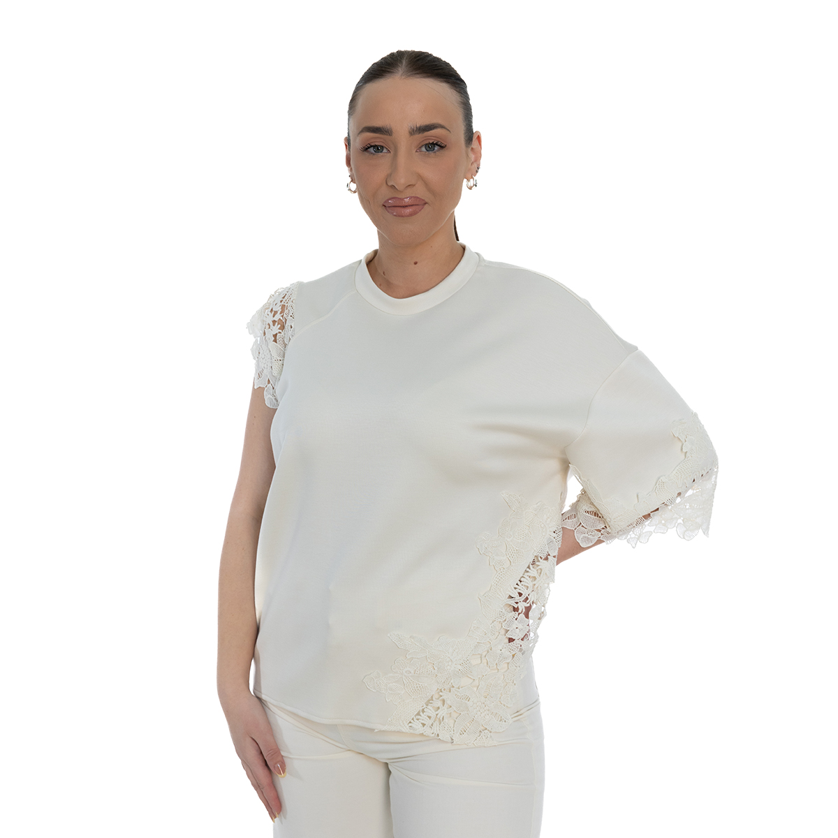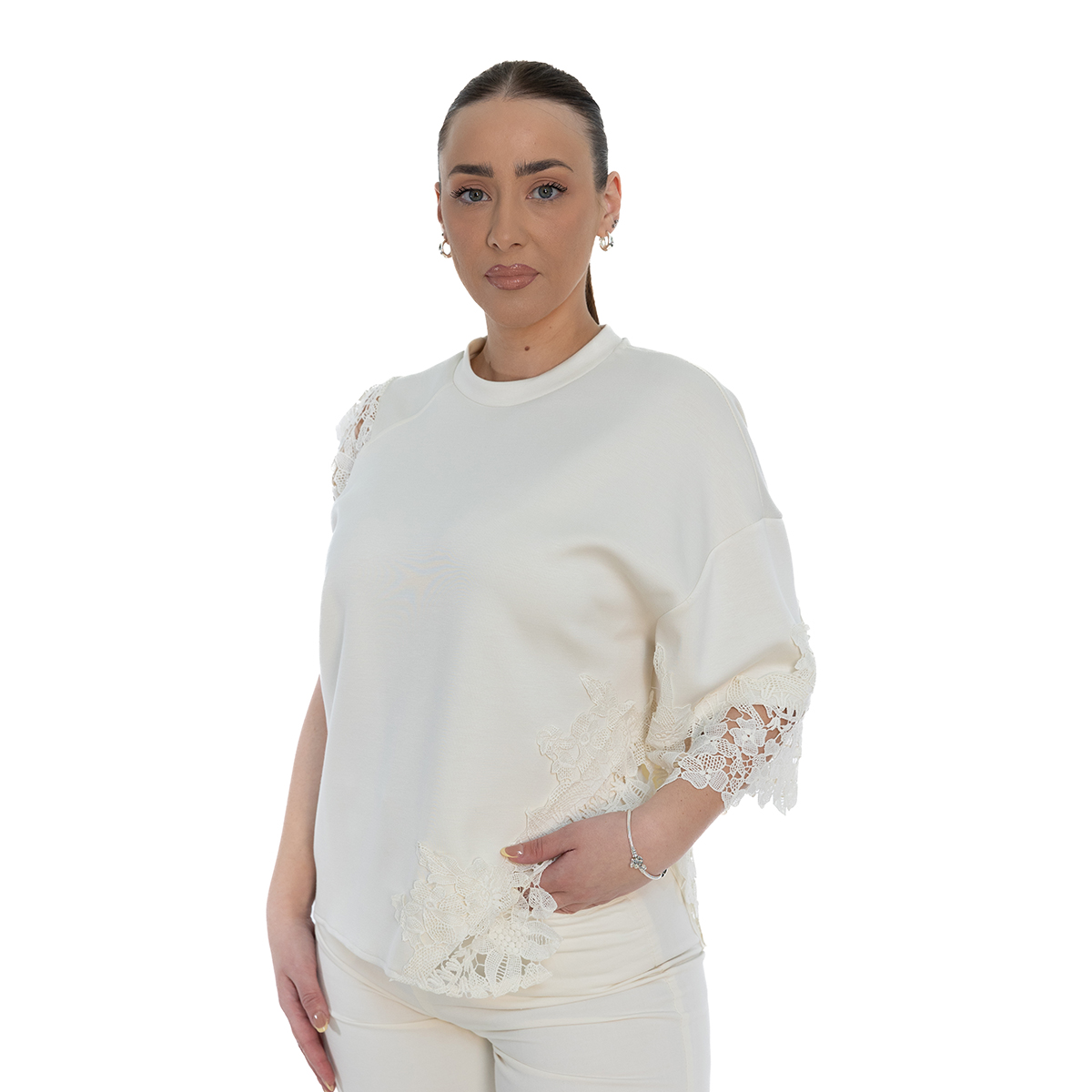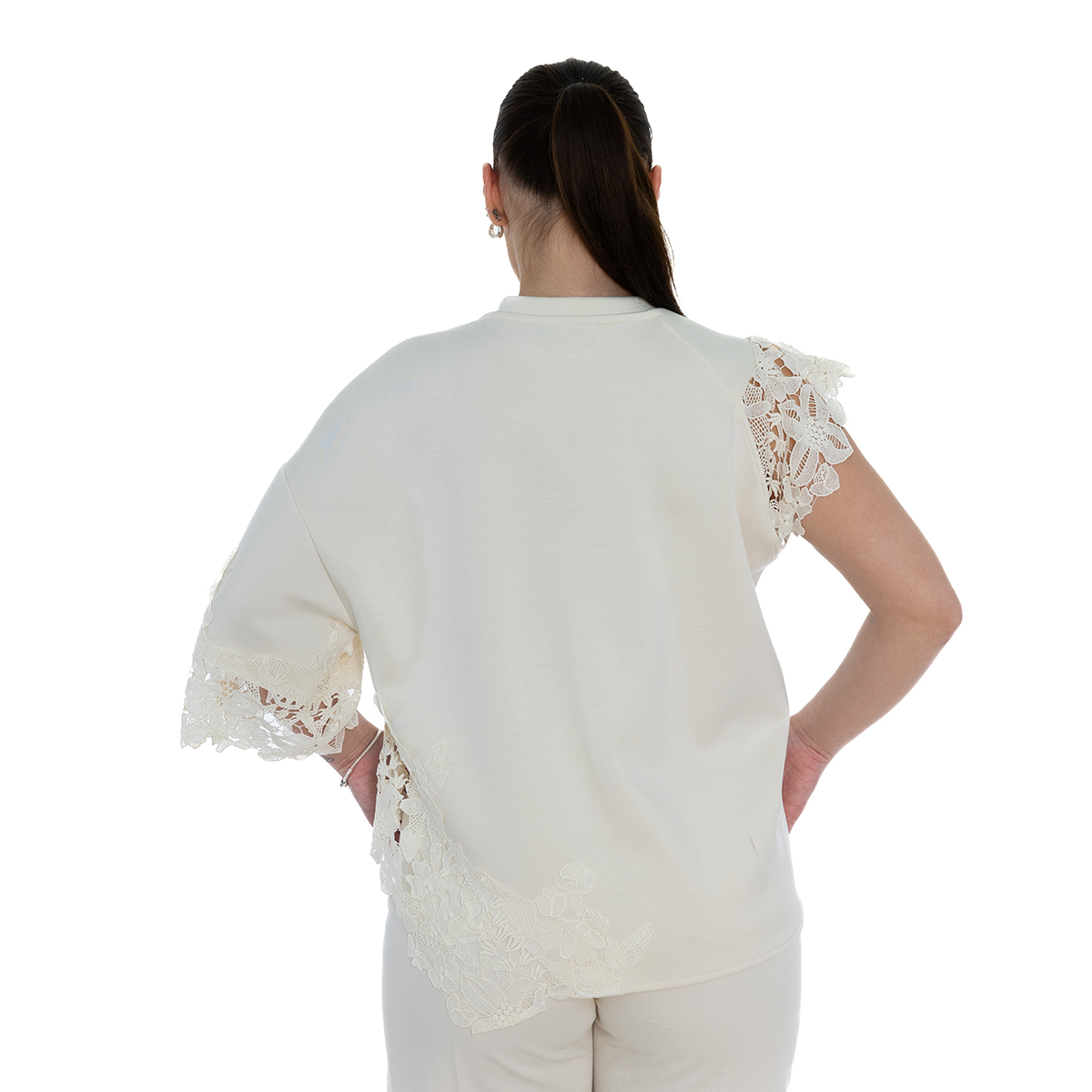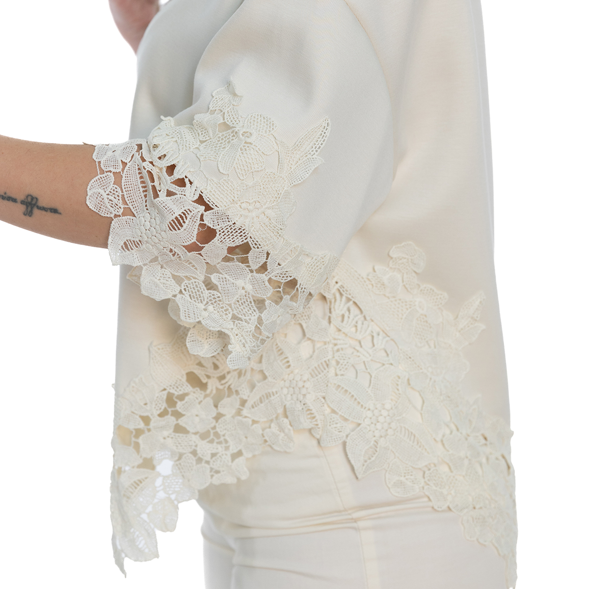 ΜΠΛΟΥΖΑ ΕΚΡΟΥ ΣΤΡΟΓΓΥΛΗ ΛΑΙΜΟΚΟΨΗ ΤΟ ΕΝΑ ΜΑΝΙΚΙ ΚΟΝΤΟ ΚΑΙ ΤΟ ΑΛΛΟ ΑΜΑΝΙΚΟ ΔΑΝΤΕΛΕΝΙΕΣ ΛΕΠΤΟΜΕΡΕΙΕΣ ΣΤΟ ΜΑΝΙΚΙ ΔΑΝΤΕΛΑ ΣΤΟ ΠΛΑΙ ΠΟΥ ΣΧΗΜΑΤΙΖΕΙ V ΙΣΙΑ ΓΡΑΜΜΗ