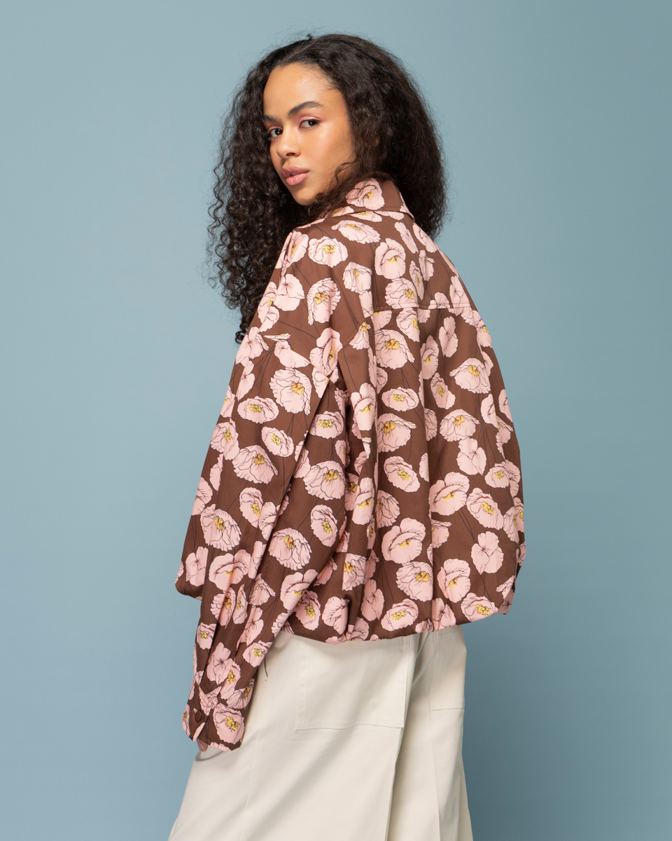 BOMBER ΦΛΟΡΑΛ ΣΧΕΔΙΟ ΑΝΕΤΗ ΓΡΑΜΜΗ MΑΚΡΙΑ MANIKIA ΜΕ ΜΑΝΣΕΤΑ ΚΟΥΜΠIA ΣΤΟ ΜΠΡΟΣΤΙΝΟ ΜΕΡΟΣ BALLOON ΣΤΟ ΚΑΤΩ ΜΕΡΟΣ ΓΙΑΚΑ